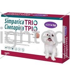 - Simparica Trio – это вкусные жевательные таблетки со вкусом печени для собак от блох, гельминтов и клещей.