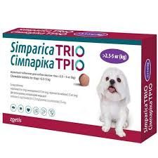 Simparica TRIO (Симпарика ТРИО) Таблетки от блох, клещей и глистов для собак весом от 2,5 до 5 кг