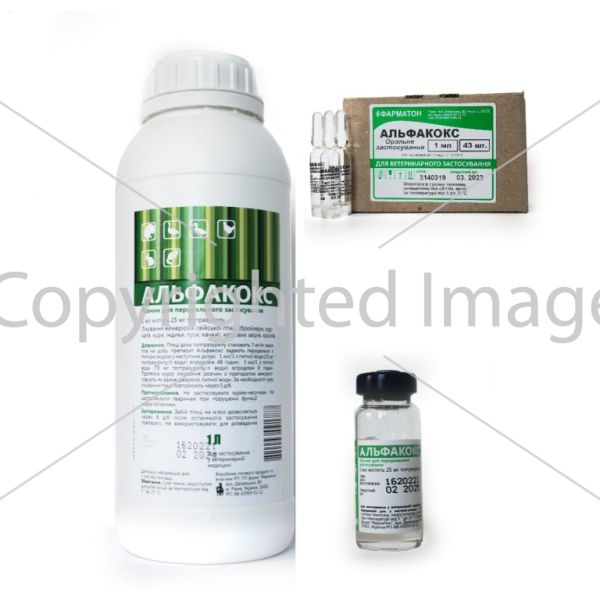 Птице доза толтразурила составляет 7 мг/кг массы тела птицы в сутки, препарат Альфакокс задают перорально с питьевой водой в следующих дозах: