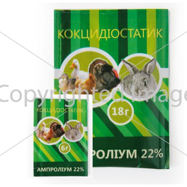 Препарат имеет широкий спектр антикокцидивного действия, эффективен в отношении Eimeria tenella, E. necatrix, E. maxima, E. acervulina у кур; Eimeria adenoides, Э. meleagrimitis у индеек; E. аnseris, E. trunca ta у гусей; E. colchii у фазанов; E. labbeana у голубей, а также против E. magna, E. perfonas, E. stiedae у кроликов и других видов кокцидий, паразитирующих у птицы и кроликов. Ампролиум гидрохлорид подавляет развитие кокцидий на стадии шизогонии первого и второго поколений, его антикокцидивное действие обусловлено близостью химической структуры препарата к тиамину (витамина B 1 ), необходимого для жизнедеятельности кокцидий. Ампролиум проникает в клетку паразита и занимает активные центры связывания витамина, что приводит к нарушению углеводного обмена и гибели паразита.