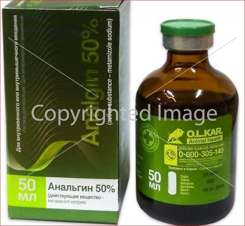 При остром расширении желудка под влиянием препарата лошади временно успокаиваются, но расширение желудка не исчезает, поэтому одновременно с анальгин 50% назначают протибродильные средства. Не вводить подкожно.