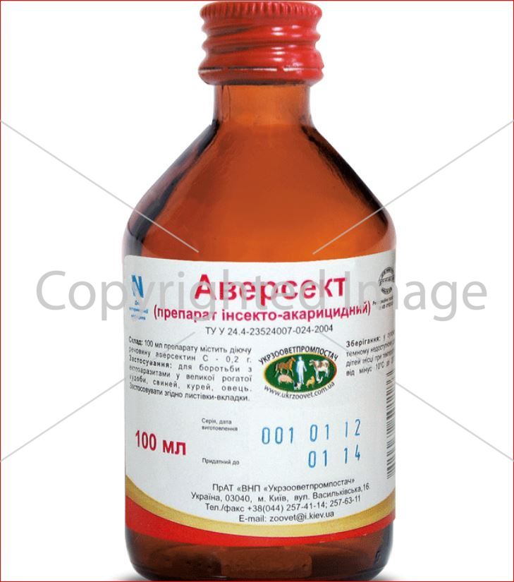 100 мл препарата содержит действующее вещество: аверсектин С – 0,2 г.
