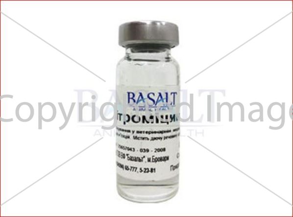 Способ применения и дозы: Азитромицин 10% применяют один раз в 72-96 часов внутримышечно в дозе 1 мл на 20 кг массы тела (5 мг/кг по действующему веществу) крупному рогатому скоту, лошадям, свиньям, овцам и козам. Собакам и котам при лечении инфекций смешанной этиологии в дозе 1 мл на 10 кг массы тела (10 мг/кг по действующему веществу).