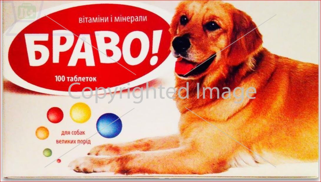 Браво® для собак больших пород - витамины и минералы для профилактики витаминной и микроэлементной недостаточности, улучшения обмена веществ и общего физиологического состояния, стимуляция роста молодых животных, предотвращение рахита и остеодистрофий, для улучшения функций кожи и качества волосяного покрова.