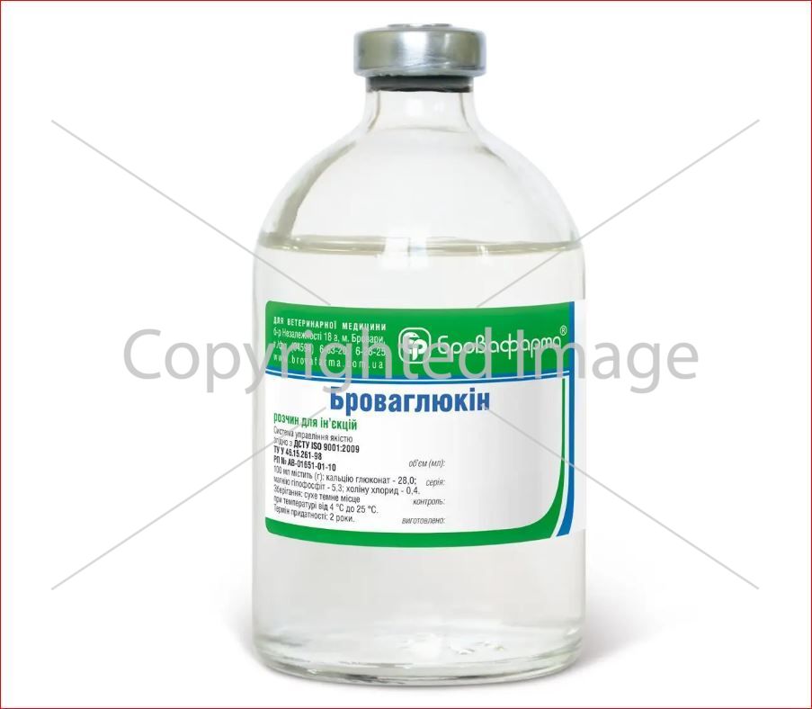 Лечение крупного рогатого скота, лошадей, овец, коз, свиней, собак, котов при до- и послеродовых залеживаниях, задержании последа, родильном парезе, гипокальцемии, рахите, остеомаляции, тетании, аллергическом состоянии, кровотечении, токсикозе, кетозе и других нарушениях обмена веществ. Флакон 100 мл.