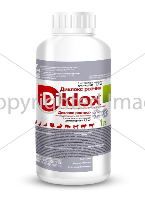 Действующее вещество препарата диклазурил — химически синтезированный нейонофор из класса бензолацетонитрилов, который нарушает энергетические обменные процессы эндогенного цикла развития кокцидий. Вещество действует на все виды кокцидий птицы (E. acervulina, Е. brunetti, Е. maxima, E. mitis, E. necatris, E. tenella, E. adenoeides, Е. gallopavonis, E. meleagrimitis и др.), кроликов (Е. flavescens, E. intestinalis, E. magna, E. perforans, E. Stiedai и др.), крупного и мелкого рогатого скота, свиней. Наиболее чувствительны к препарату неполовые стадии эндогенного цикла развития кокцидий. Диклазурил не вызывает побочного действия даже при превышении рекомендованных доз в 25-50 раз. Препарат не имеет мутагенного, канцерогенного и тератогенного действия, его можно сочетать с другими препаратами. Вещество термостабильно, эффективно в небольших дозах, не кумулирует в органах и тканях организма животных.