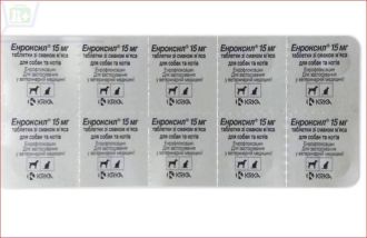 Энроксил таблетки со вкусом мяса для собак и кошек 15 мг, блистер 10 таб.