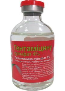 Гентамицин относится к группе аминогликозидов. Он активен к грамотрицательным и грамположительным микроорганизмам: Escherichia coli, Salmonella spp. Shigella spp., Enterobacter aerogenes, Klebsiella spp., некоторых видов Proteus spp. и Serratia spp., Pseudomonas aeruginosa, Pasteurella multocida, Staphylococcus aureus, Serpulina hyodysenteriae, Mycoplasma spp. На чувствительные клетки гентамицин действует в нескольких направлениях: влияние на целостность цитоплазматической мембраны, влияние на метаболизм РНК; угнетение синтеза белка на уровне ЗОs рибосомальной субъединицы.