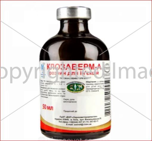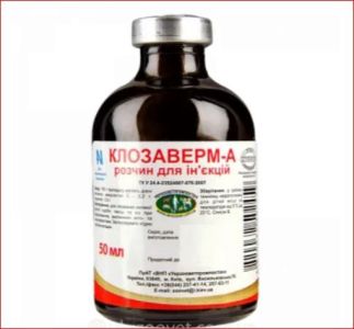 Клозаверм-А, 50 мл - противопаразитарный ветеринарный препарат для лечения крупного рогатого скота, овец и коз при фасциолезе, дикроцелиозе, буностомозе, гемонхозе, эзофагостомозе, диктиокаулезе, остертагиозе, нематодирозе, трихостронгилезе, хабертиозе, гиподерматозе, эстрозе, сифункулятозах и чесоточных болезнях.