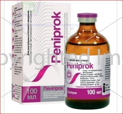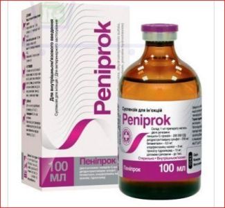 Пенипрок суспензия для инъекций, 100 мл - применяют для лечения у крупного рогатого скота, свиней, лошадей, овец, коз, собак и кошек омфалита, артрита, мастита, септицемии и вторичных инфекций, а также заболеваний органов дыхания и мочеполовых путей, вызванные микроорганизмами, чувствительными к пенициллину и дигидрострептомицину.