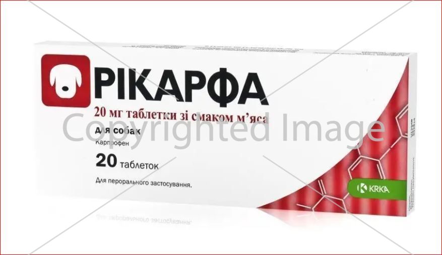 Рикарфа таблетки со вкусом мяса (Ricarfa® tablets with meat flavor). Относится к нестероидным противовоспалительным препаратам. Международное непатентованное наименование: карпрофен.