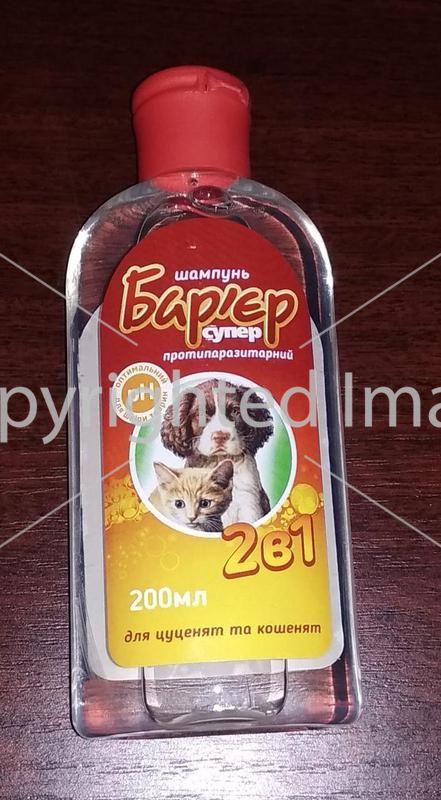 Шампунь "Барьер" противопаразитарный универсальный для котов применяется для уничтожения эктопаразитов и для гигиенического профилактического ухода за кожей и шерстью животных.