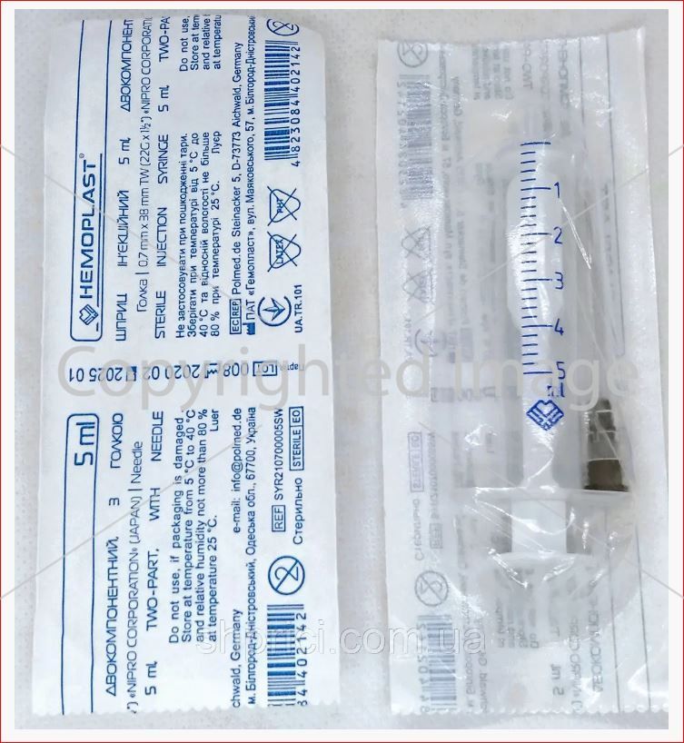 Тип товара:Шприц одноразовый 5 мл
