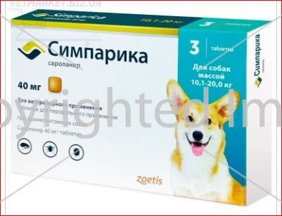 Симпарика 40мг для собак 10-20кг 3 таблетки