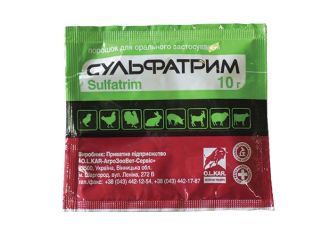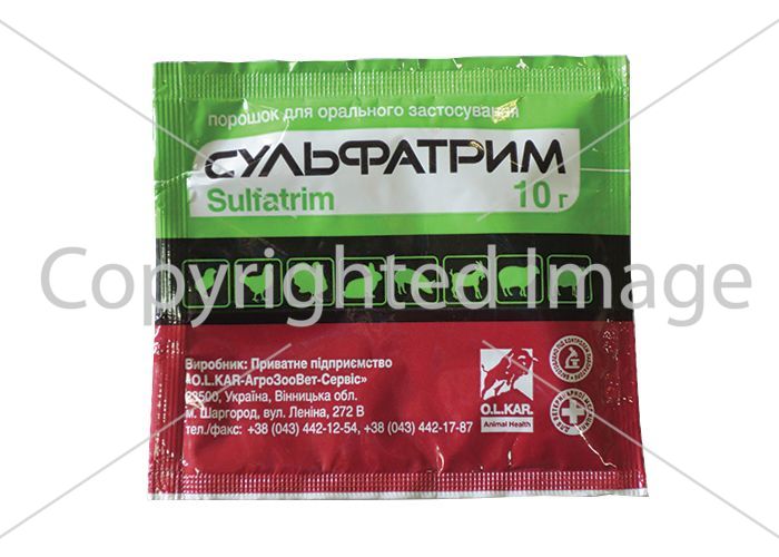 Телята, козлята, ягнята: профилактика и лечение диареи, колисептицемии, стрептококкового полиартрита, сальмонеллеза, пастереллеза, пневмонии, стафилококковых абсцессов, омфалита, а также заболеваний органов дыхания и мочевыводящей системы, вызванных микроорганизмами, чувствительными к триметоприму и сульфадиметоксину.