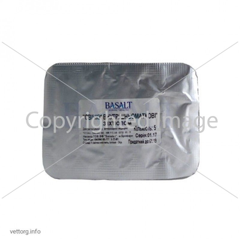 с профилактической целью (после оказания родильной помощи или оперативного отделения помета): коровам – по 3-5 свечей, овцам и козам – 1-2 свечи однократно.