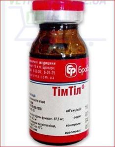 Тим Тил раствор для инъекций, 10 мл - антибиотик широкого спектра действия для лечения у крупного рогатого скота, овец, коз, свиней заболеваний: дизентерия, илеит, коллибактериоз, сальмонеллез, атрофический ринит, бронхопневмония, перитонит, гнойный артрит, бруцеллез и другие инфекции, вызванные микроорганизмами чувствительными к тиамулину и тилозину.